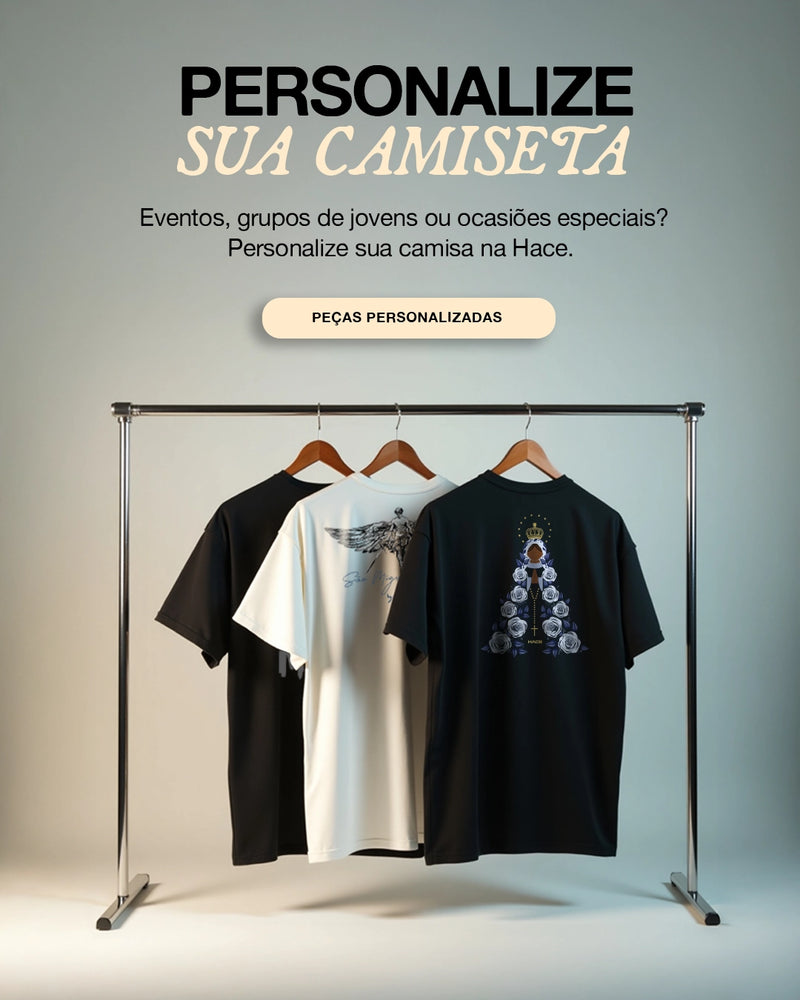 Somos uma marca cristã com alma jovem e estética minimalista, que acredita que o testemunho também se veste. Cada detalhe — do design às embalagens — carrega uma intenção: inspirar conversão, provocar paz e abrir espaço para Deus, mesmo em meio à correria da vida.
