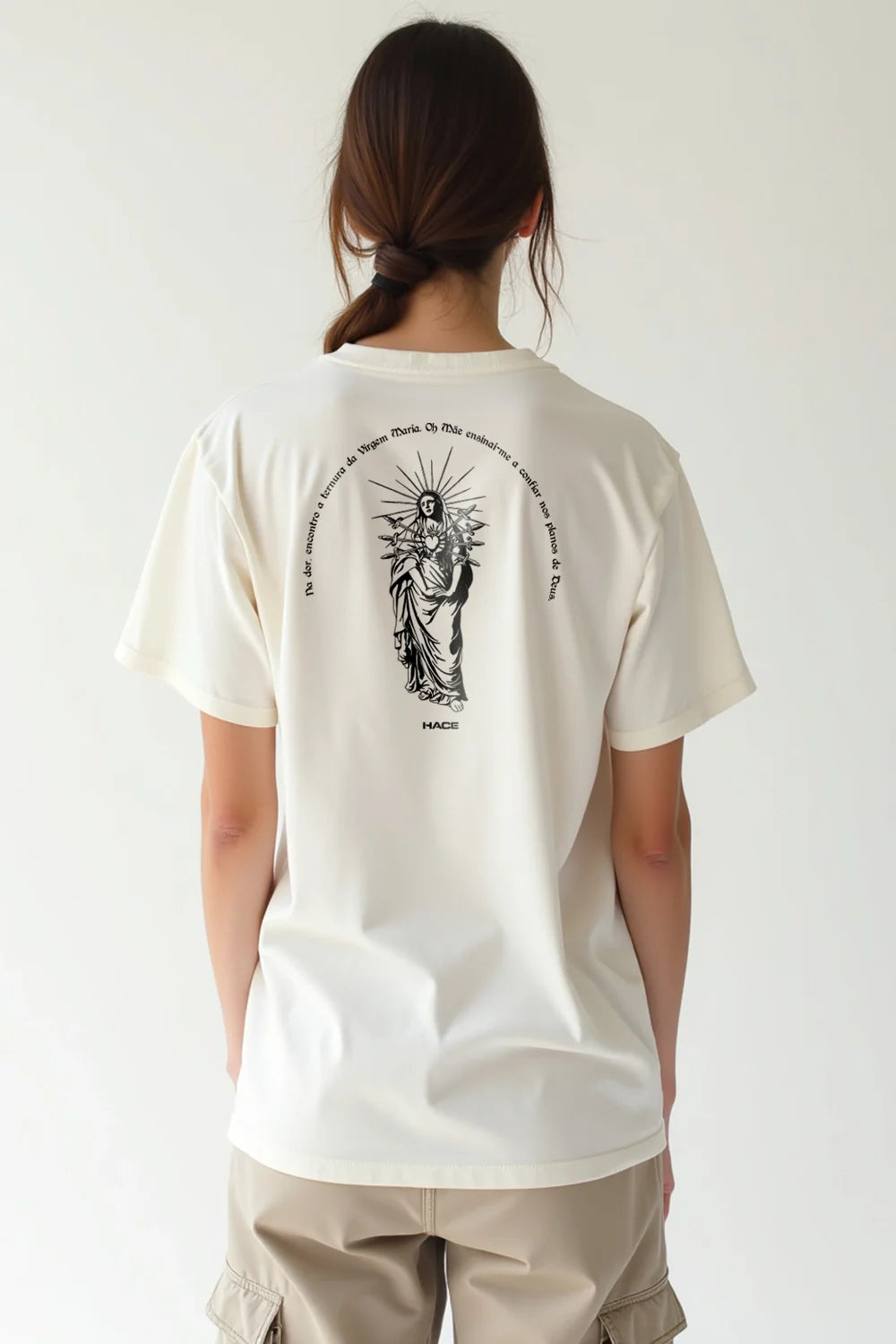 Essa camisa é um convite à confiança nos dias difíceis. Um lembrete de que a dor, quando unida a Cristo, não é o fim da história é caminho de redenção. Maria nos mostra que sofrer com fé é também participante do mistério do Amor que salva.