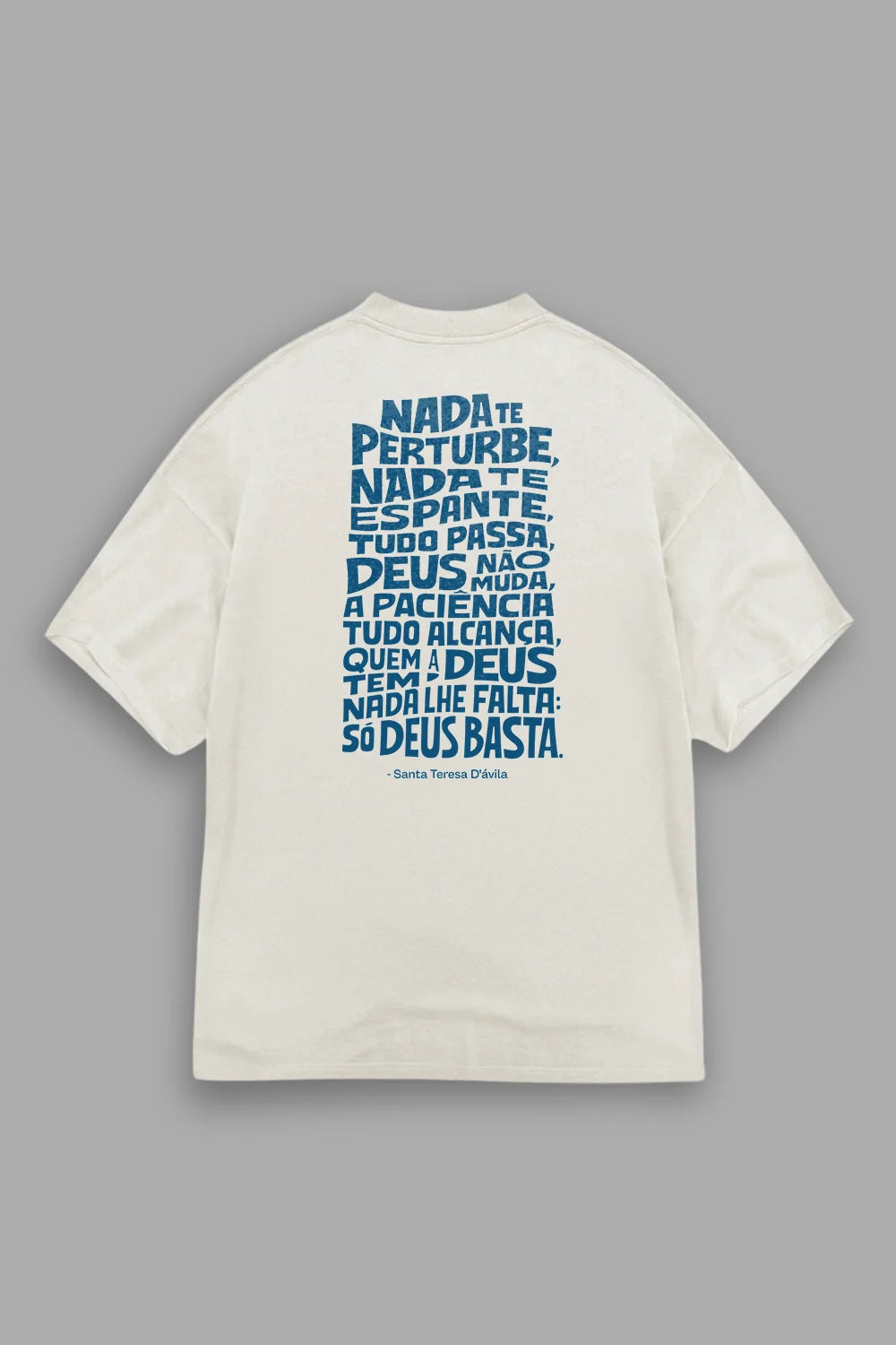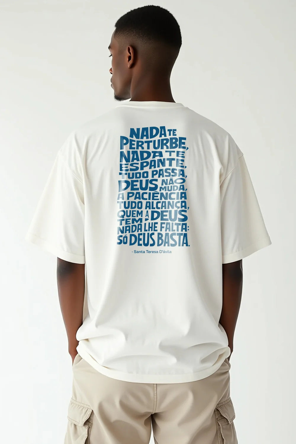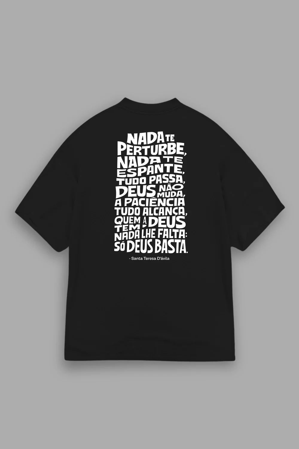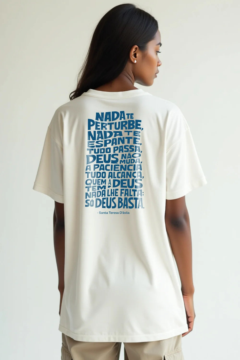 Essa camiseta traz um respiro. Um lembrete suave e profundo da espiritualidade de Santa Teresa d’Ávila e da paz que nasce quando confiamos inteiramente em Deus.